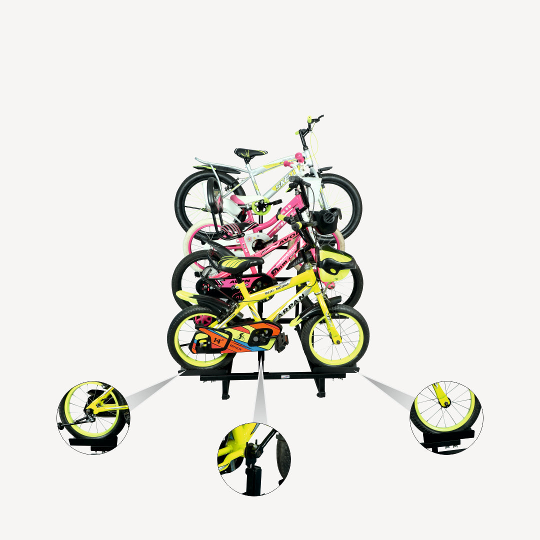 The 4 Bike Step Display Stand (Kids) is a compact and sturdy solution for showcasing up to 4 children's bicycles in a stepped layout. Ideal for showrooms, exhibitions, or retail spaces, this stand enhances product visibility while keeping the footprint minimal. It features easy DIY assembly and is built from durable steel with a powder-coated finish.